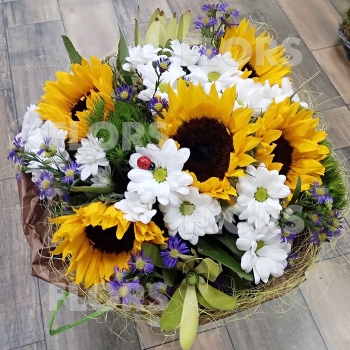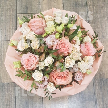 Что-то практичное, чтобы долго стояло. Сочетание классики и наивности. Пышное, не яркое соцветие.