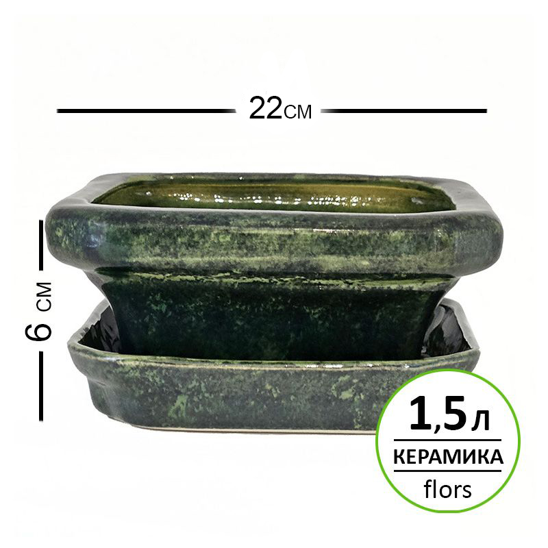 Бонсайница керамика Квадратная Зеленая