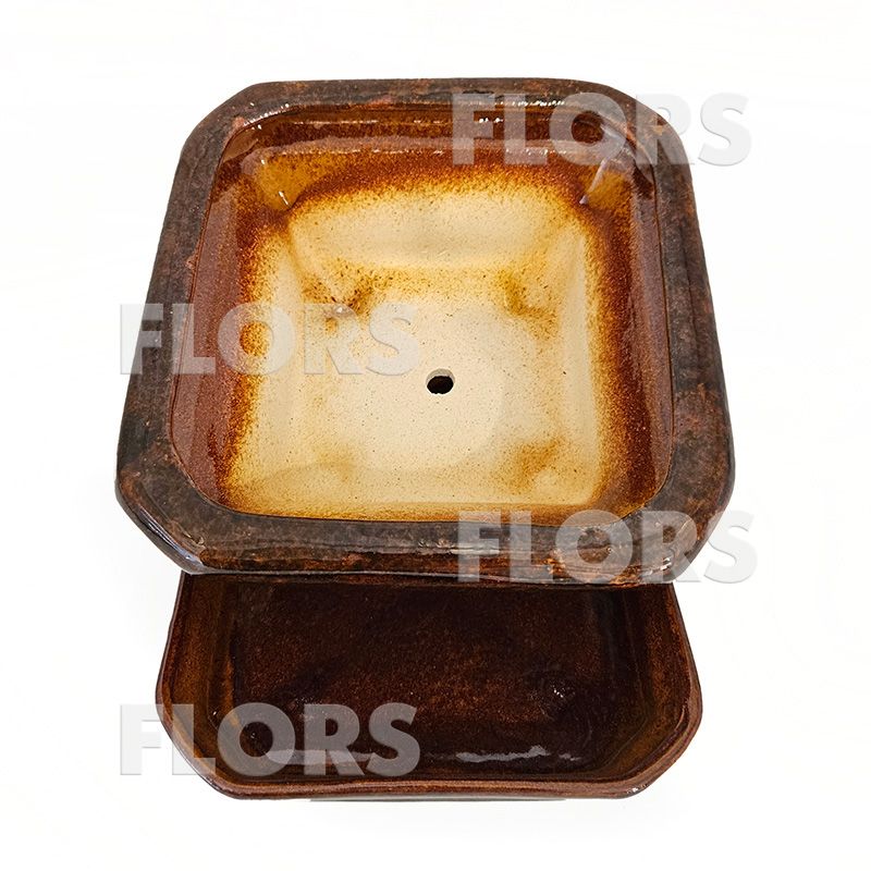 Бонсайница керамика Квадратная Коричневая
