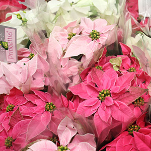 Пуансеттия или Рождественская звезда. Названа она так потому, что период цветения приходится на католическое Рождество. Доступна к приобретению с ноября по конец декабря. Но после того как вы ее принесете домой, она будет цвести до апреля-мая включительно, после чего сменит яркие листья (которые называют цветами, хотя это не совсем точно) на привычный зеленый наряд. Выращивают не только красные сорта, но и пестрые, розовые, малиновые, белые, кремовые.
