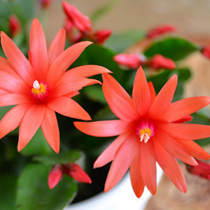 Шлюмбергера или лесной кактус еще прозван декабристом за цветение именно в декабре. Восточное или северное окно, редкий полив, противопоказаны перемещения в пространстве – вот и все хитрости по уходу за этим часто встречаемым в домах цветком. Если ему у вас очень понравится, он повторно зацветет в марте-апреле.