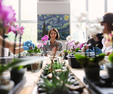 Мы выполняем озеленение: привозим растения, горшки, пересаживаем и расставляем по местам