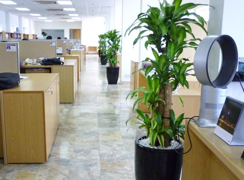 Растения необходимо ставить не только на окнах, но и по возможности в рабочей зоне каждого сотрудника. Доказано, что в течение рабочего дня умственная активность падает, так как наш мозг тратит много энергии на выполнение заданий. Лучше всего восстанавливают силы растения или животные, например, рыбки. Цветы и растения также помогают сделать зонирование помещения, снизить уровень шума и его влияние на отдельных сотрудников. Это особенно необходимо для тех, чьи столы расположены рядом с выходом, раздевалкой, кулером.