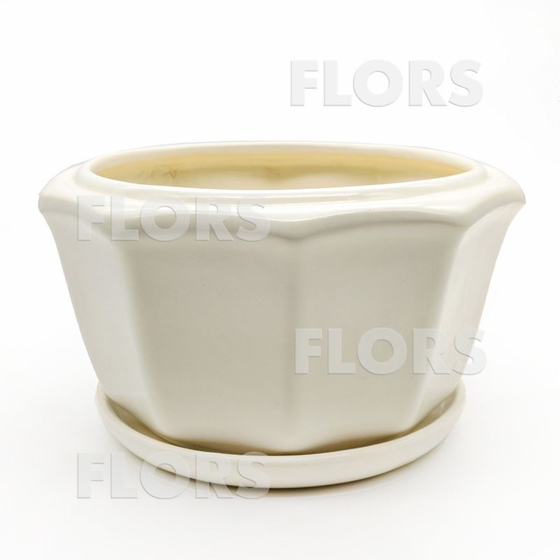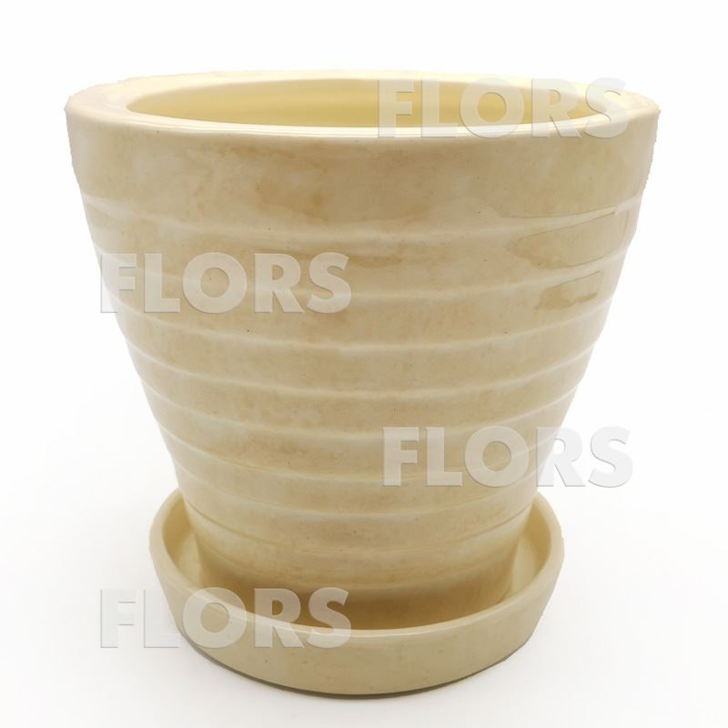 Горшок керамика №03 с подст. Бежевый