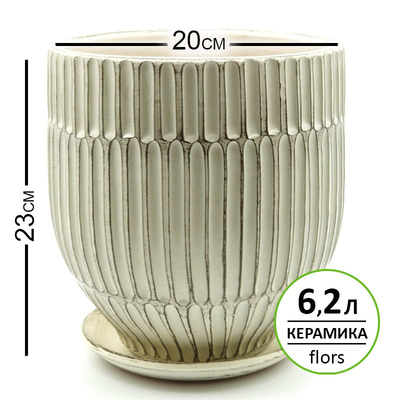 Керамический горшок для цветов c дренажным отверстием в дне и блюдцем. Классический итальянский стиль. Керамика высокотемпературного обжига, очень качественная и долговечная. Окрашен снаружи и изнутри.
