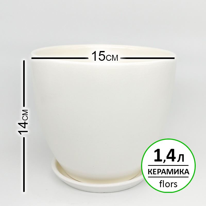 Керамический горшок для цветов c дренажным отверстием в дне и блюдцем. Керамика - экологически чистый и "дышащий" материал для цветочных горшков.