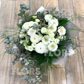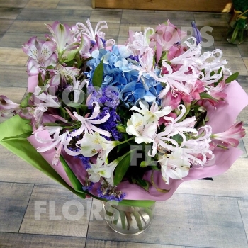 Что-то практичное, чтобы долго стояло. Сочетание классики и наивности. Пышное, не яркое соцветие.