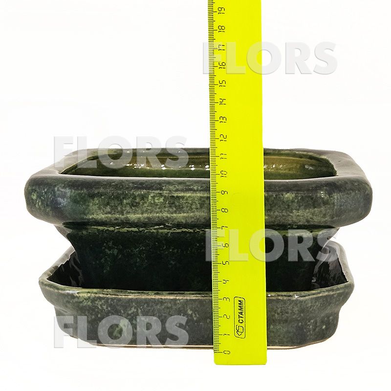 Бонсайница керамика Квадратная Зеленая