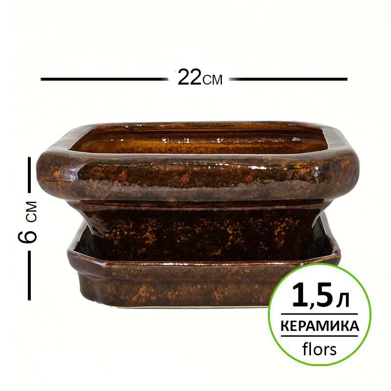 Бонсайница керамика Квадратная Коричневая