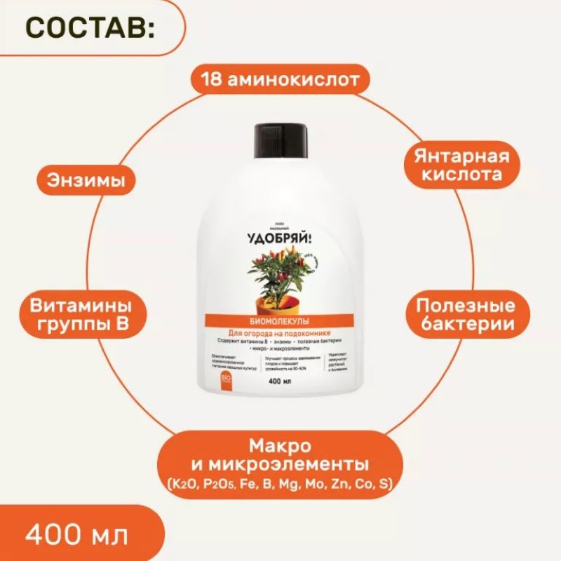 Удобрение Биомолекулы для огорода на подоконнике 400мл