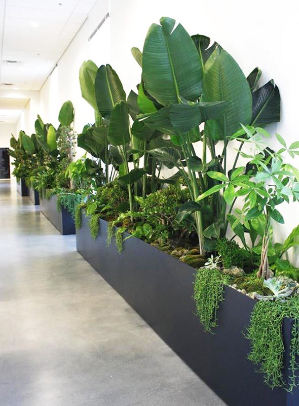Растения необходимо ставить не только на окнах, но и по возможности в рабочей зоне каждого сотрудника. Доказано, что в течение рабочего дня умственная активность падает, так как наш мозг тратит много энергии на выполнение заданий. Лучше всего восстанавливают силы растения или животные, например, рыбки. Цветы и растения также помогают сделать зонирование помещения, снизить уровень шума и его влияние на отдельных сотрудников. Это особенно необходимо для тех, чьи столы расположены рядом с выходом, раздевалкой, кулером.