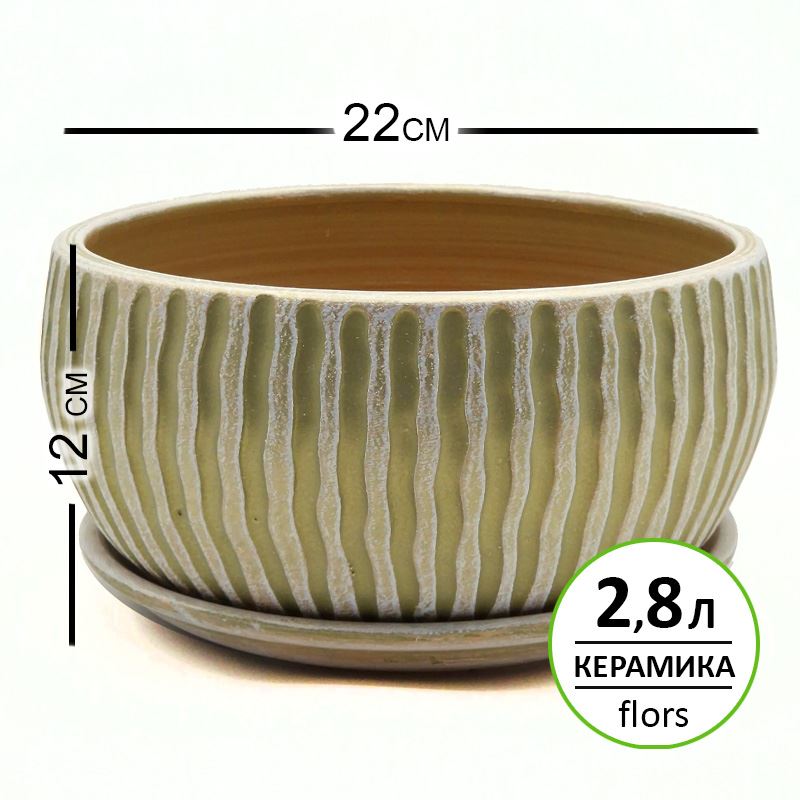 Керамический горшок для цветов c дренажным отверстием в дне и блюдцем. Классический итальянский стиль. Керамика высокотемпературного обжига, очень качественная и долговечная. Окрашен снаружи и изнутри.