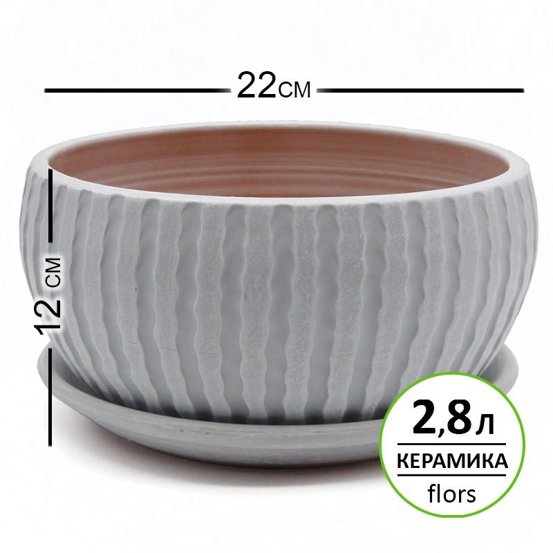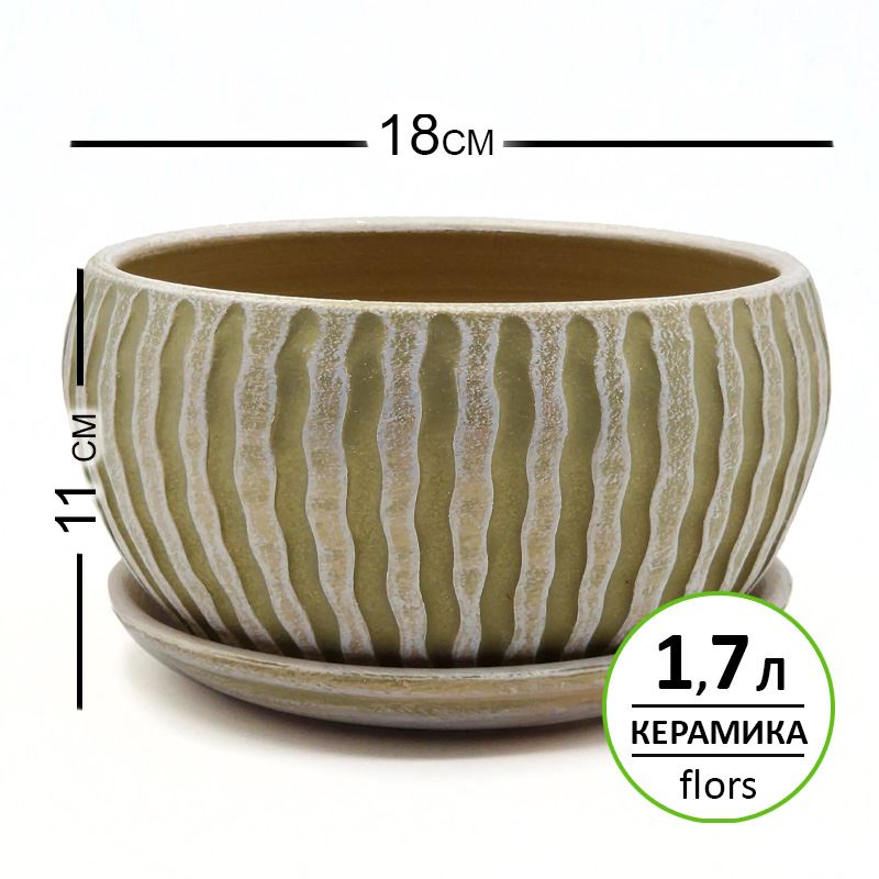 Керамический горшок для цветов c дренажным отверстием в дне и блюдцем. Классический итальянский стиль. Керамика высокотемпературного обжига, очень качественная и долговечная. Окрашен снаружи и изнутри.
