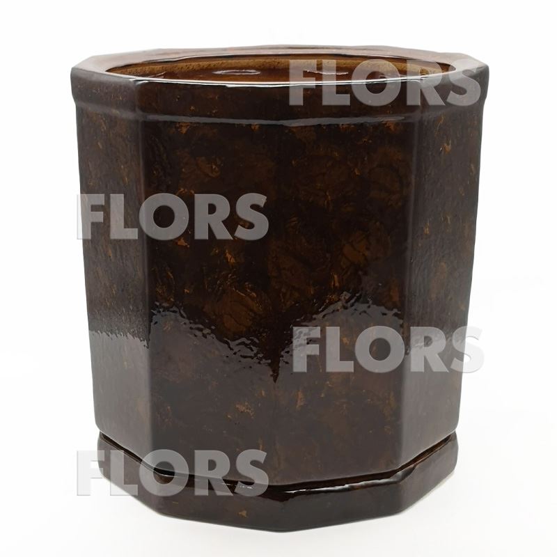 Горшок керамика Десятигранник с подст. Коричневый