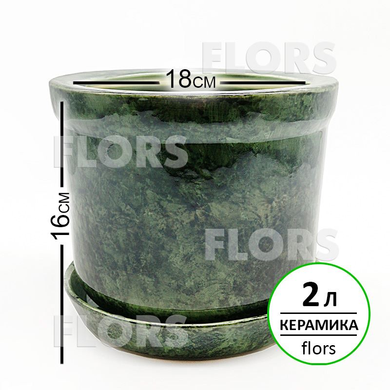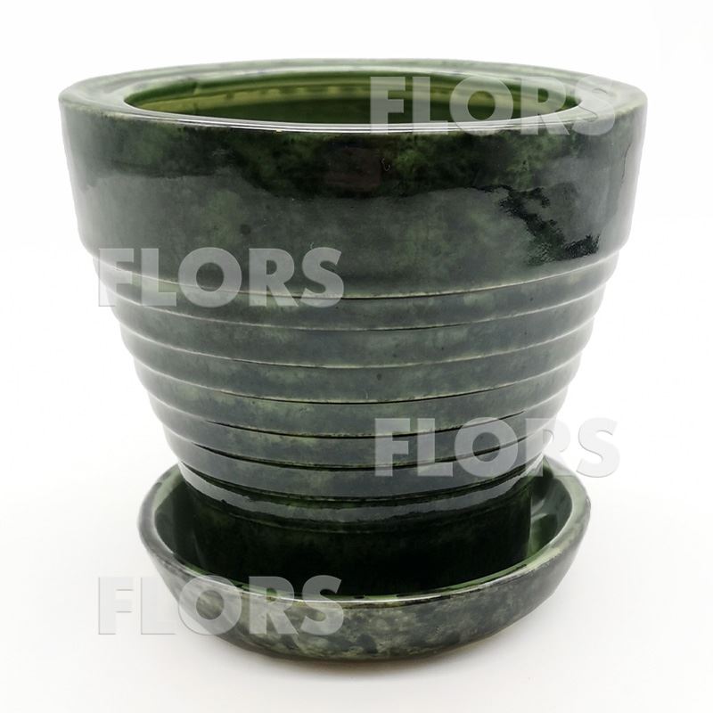 Горшок керамика №20 с подст. Зеленый