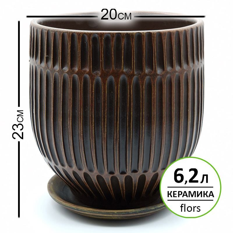 Керамический горшок для цветов c дренажным отверстием в дне и блюдцем. Классический итальянский стиль. Керамика высокотемпературного обжига, очень качественная и долговечная. Окрашен снаружи и изнутри.