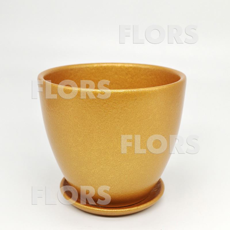 Керамический горшок для цветов c дренажным отверстием в дне и блюдцем.